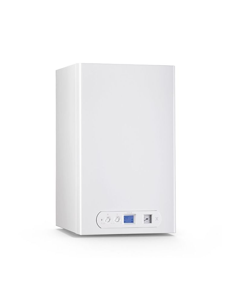 Cazan pe gaz montat pe perete cu arzător cu premix total, condensare cu NOx clasa 6 - cameră etanșată - aprindere electronică și modulare a puterii.